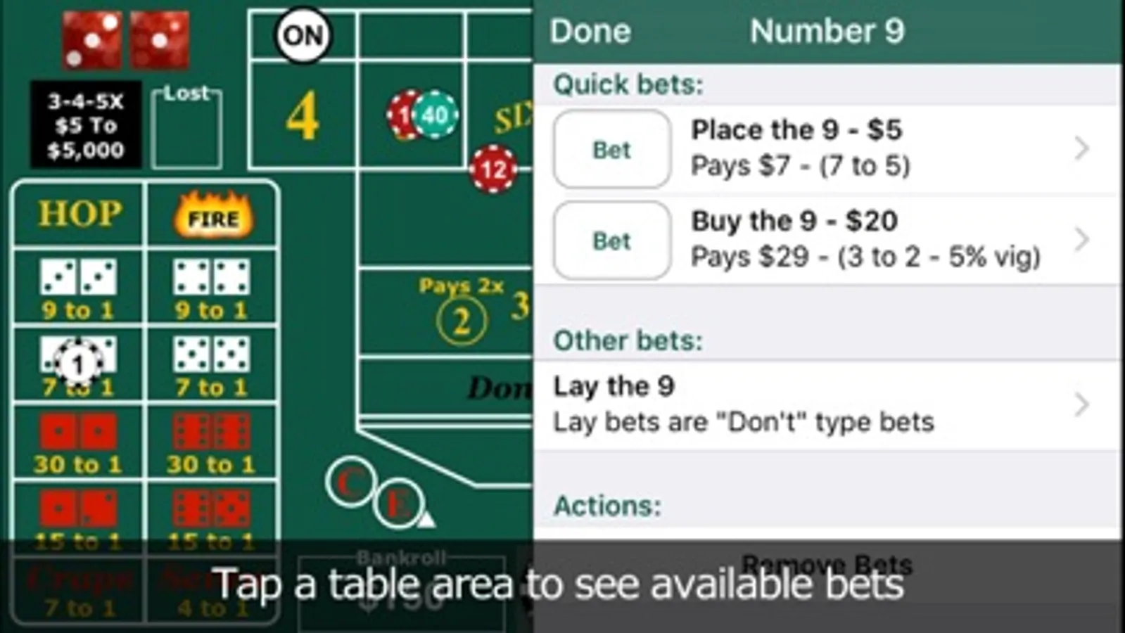 • Table layout and game play simulates real casino craps