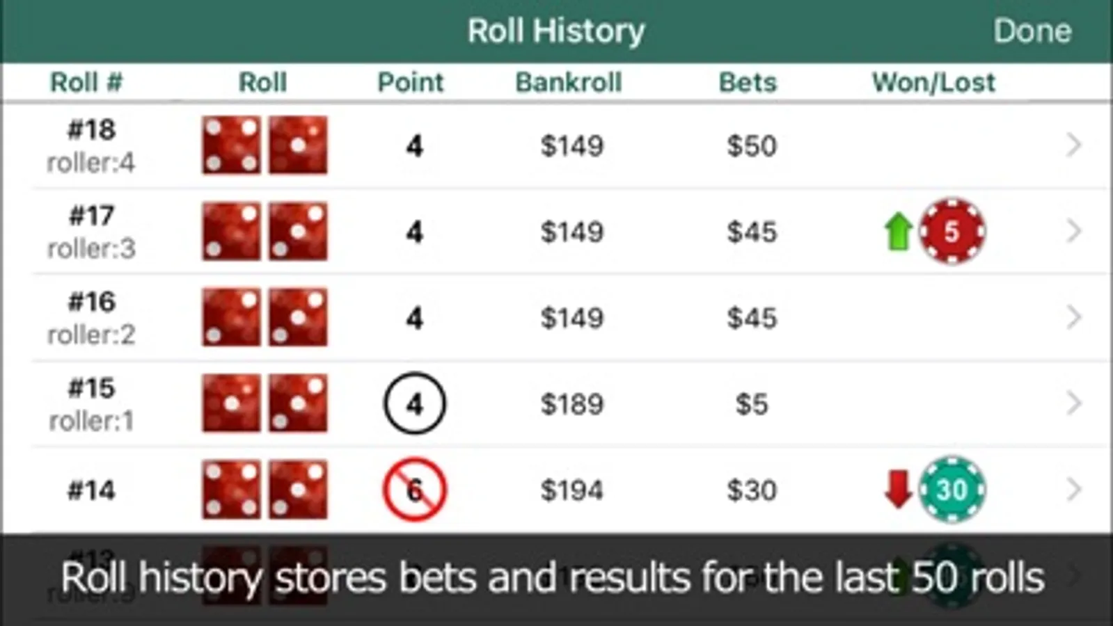• Choose from five different dice to simulate shooters that are hot, warm, standard, cool or cold.