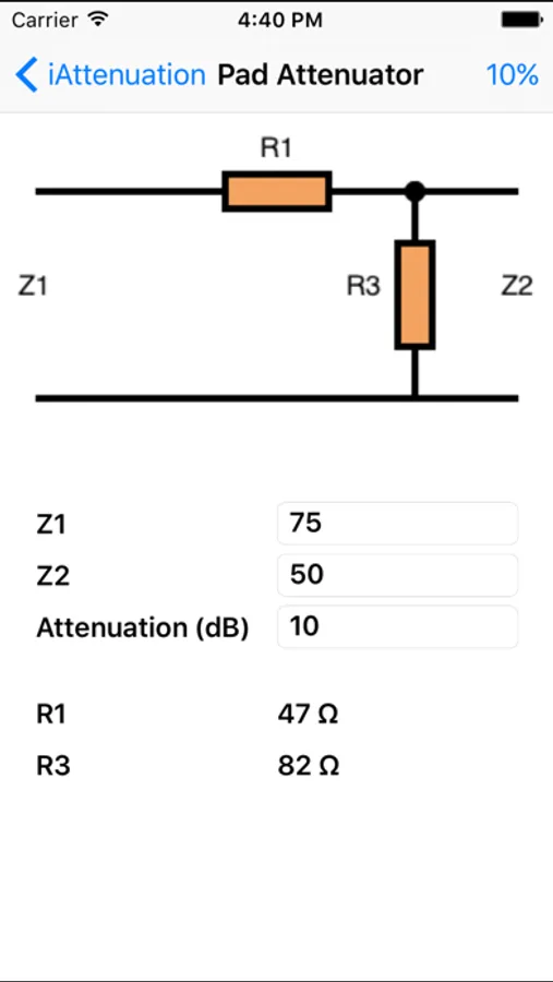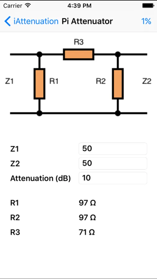 Just enter in the input and output impedance values, and the desired attenuation, and iAttenuation does the rest!