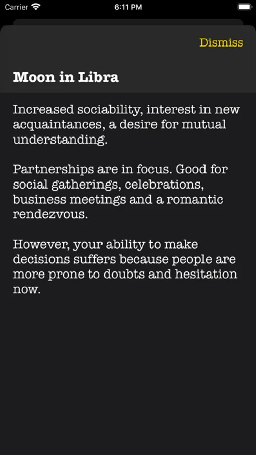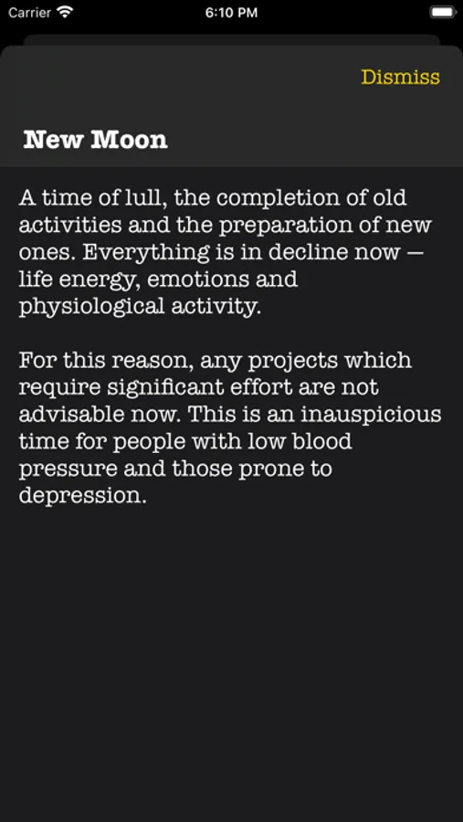 Once any of the events reported by iLuna happens, you will get a notification, provided you allowed the app to send you notifications.
