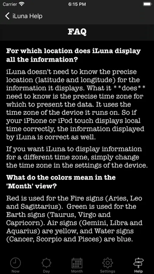To calculate the times, iLuna uses the time zone of the device on which it runs, so if your iPhone or iPad shows your current time correctly, iLuna's information is precise too.