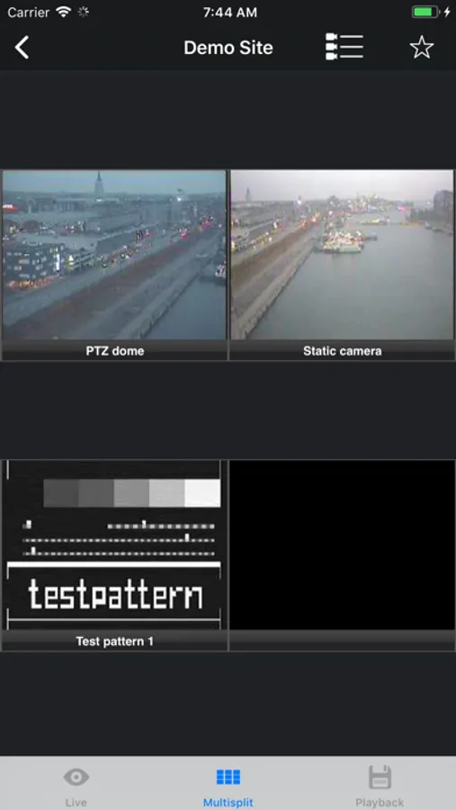 - Multisplit (Multiview) allows to display up to 6 (iPod touch, iPhone 3Gs/4/4s/5/5s/6) or 9 (iPhone 6+ und iPad) cameras in parallel.