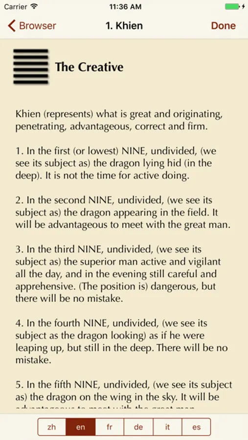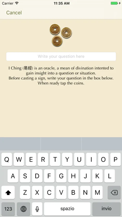 The I Ching in itself and the program are localized in English, Italian, French, German and Spanish so that (almost) everyone can easily access the Oracle.