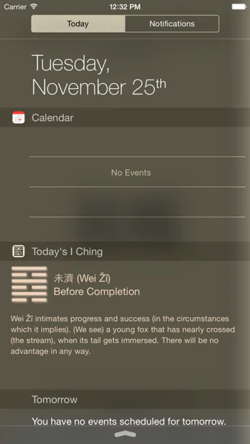 The text related to this hexagram will represent "the Present", the actual state of the thing. Once a hexagram is determined, each line has been determined as either changing (old) or unchanging (young).