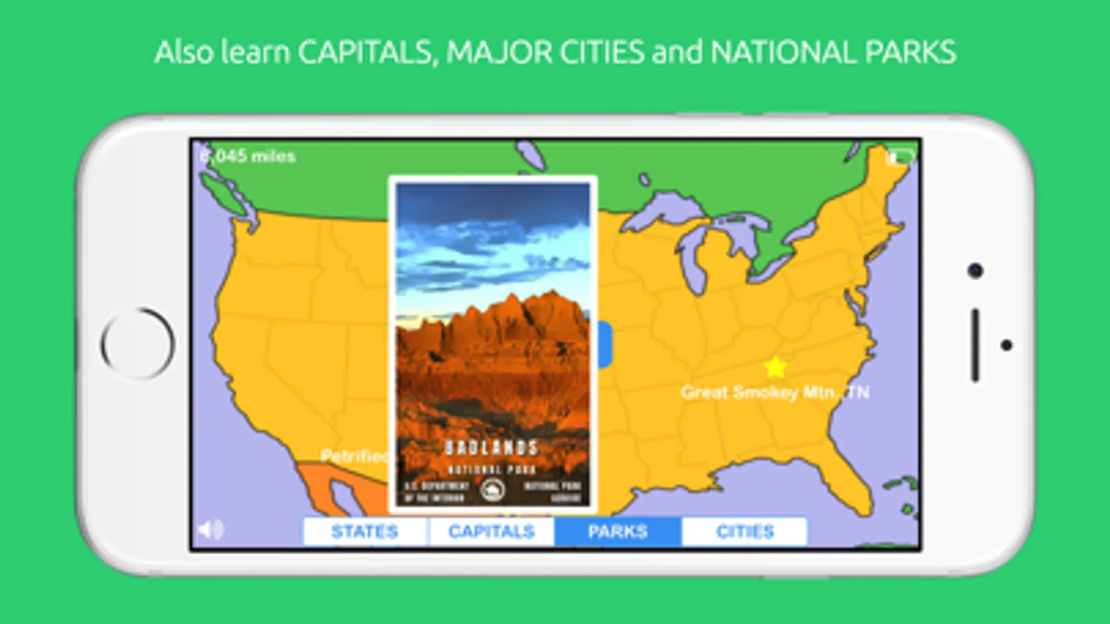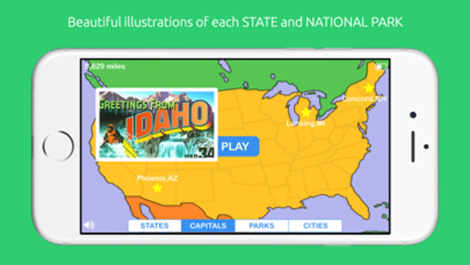 PopGeo teaches you the names and locations of U.S. states, capitals, major national parks and cities.