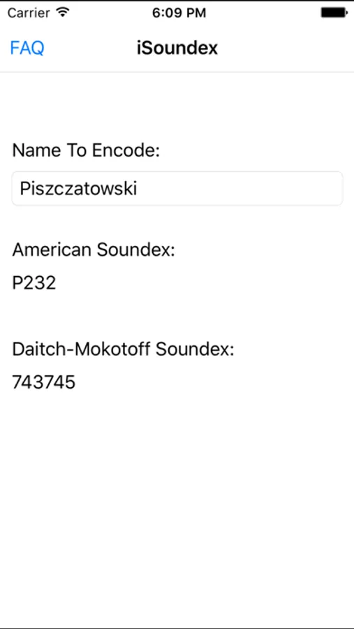iSoundex lets you quickly and easily generate American and Daitch-Mokotoff Soundex Codes. Just type in the name, and the codes are generated! A handy app for genealogists