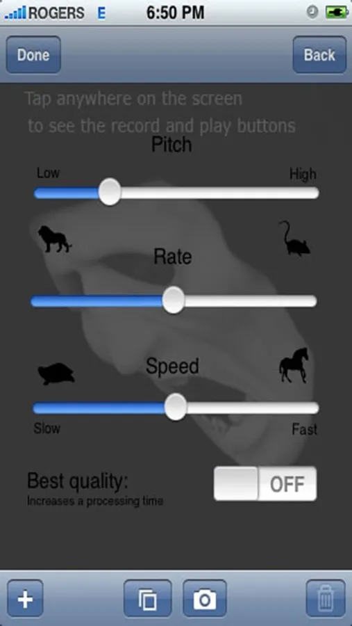 Have you ever wondered what your voice would sound like if it was a tad higher? Or have you ever wanted to play a prank on your friends, changing your voice around to make it sound different? Change the pitch, the speed, and store up to 20 custom voices on your iPhone that have their own pictures! The sky is the limit with this new voice changer.