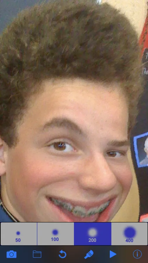 Load in an image from the camera or from your image album, then start stretching the image with your finger.