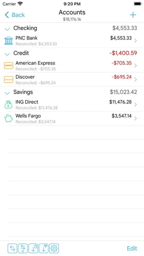 - Support for Accounts such as Checking, Savings, Credit, Debit, Cash, etc.