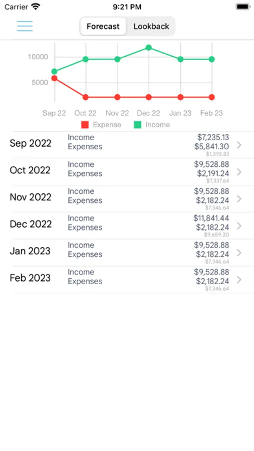 - Trend chart for Expense, Budget and Income for the last 6 months