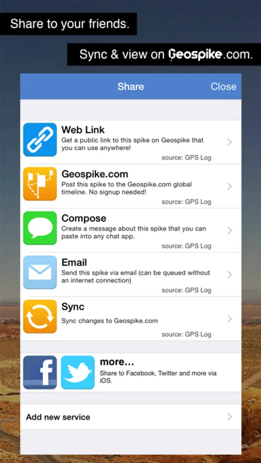 5. Connect with your friends by sharing single records (what we call spikes), trip maps and lifetime travel maps using our own website Geospike, and on social media.
