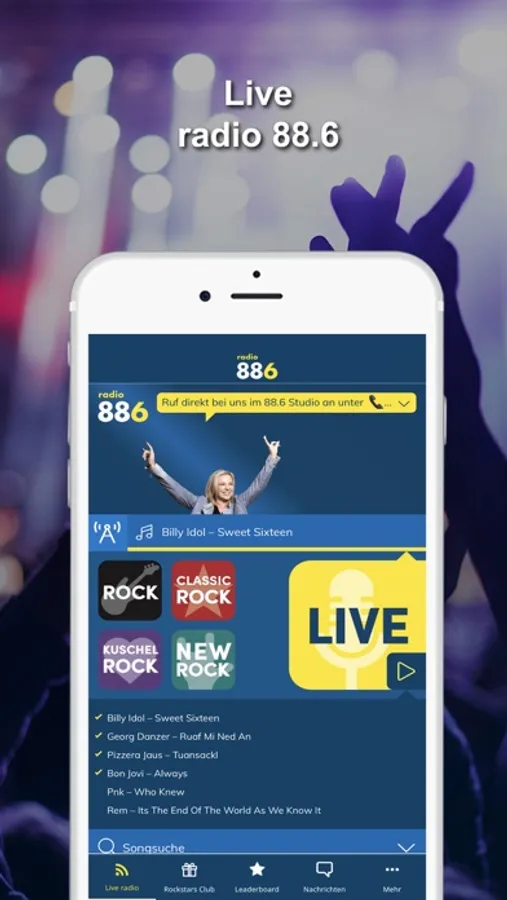 Listen to the radio station 88.6 Der Musiksender over W-LAN, 3G and EDGE, directly on your iPhone.