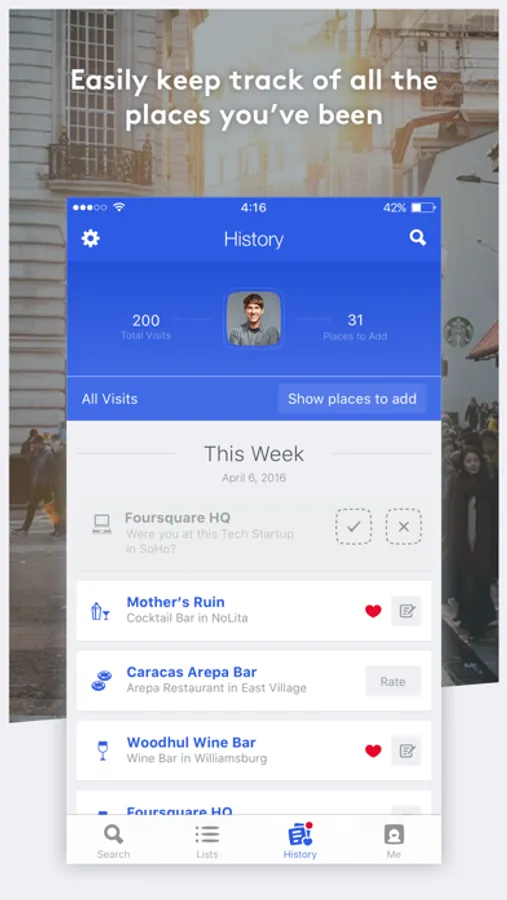 Looking to check in or become Mayor of your local coffee shop? Download our sister app, Foursquare Swarm.