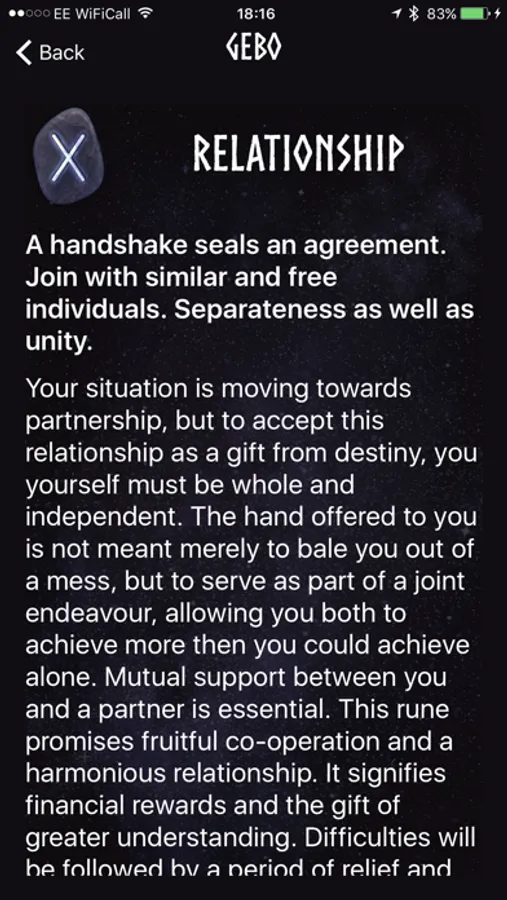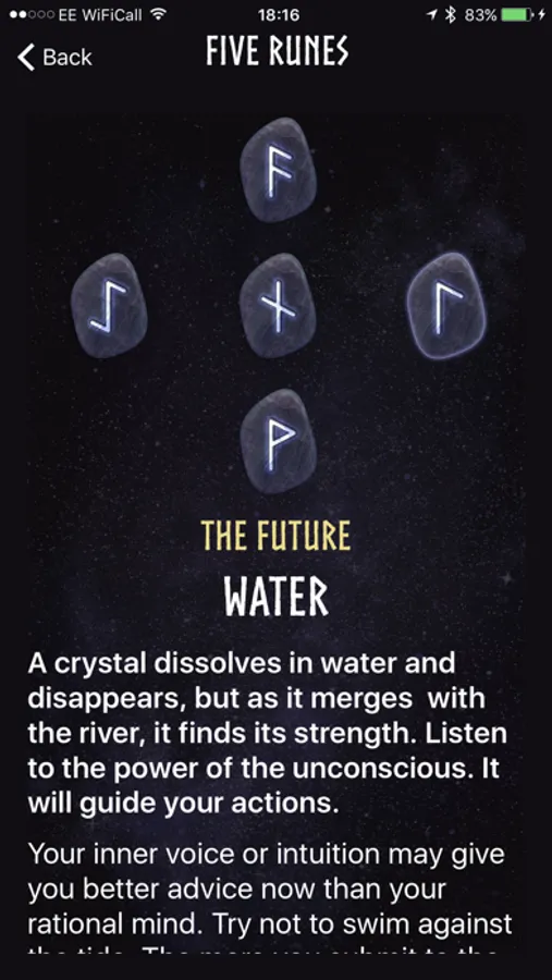 "Runic Oracle is by far my favourite rune app! Even though I have actual runes, I find myself turning to the app instead. I love the options for different spreads, and the descriptions for each rune are fantastic! Runic Oracle is eerily accurate."
