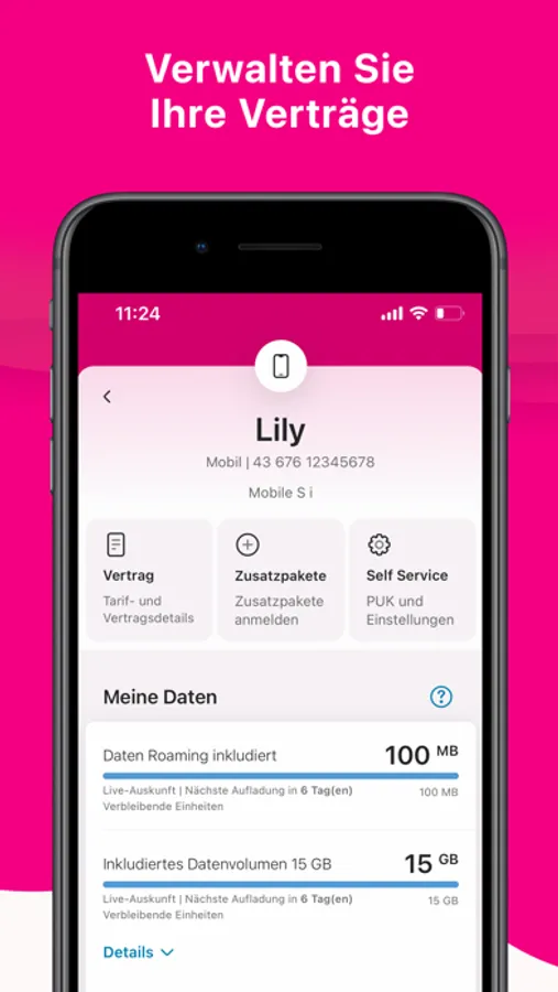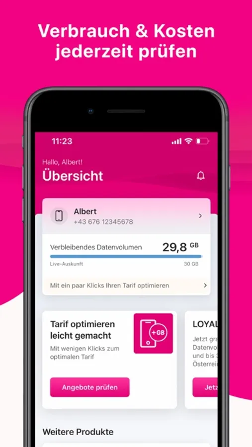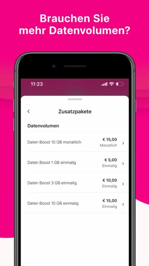 Sehen Sie ganz einfach, wie viel Datenvolumen Sie noch zur Verfügung haben oder buchen Sie einen Volume Boost, um in voller Geschwindigkeit weiter zu surfen. Prepaid-Kunden können ihr Guthaben kontrollieren und bequem aufladen.