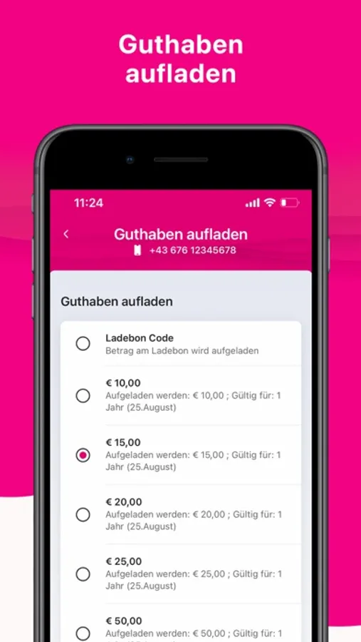 Jetzt ist es noch einfacher Guthaben für Ihre Klax-Wertkarte aufzuladen. Wählen Sie in der App einfach den gewünschten Aufladebetrag. Durch das Aufladen ist Ihre Klax-Wertkarte für weitere 12 Monate aktiv.