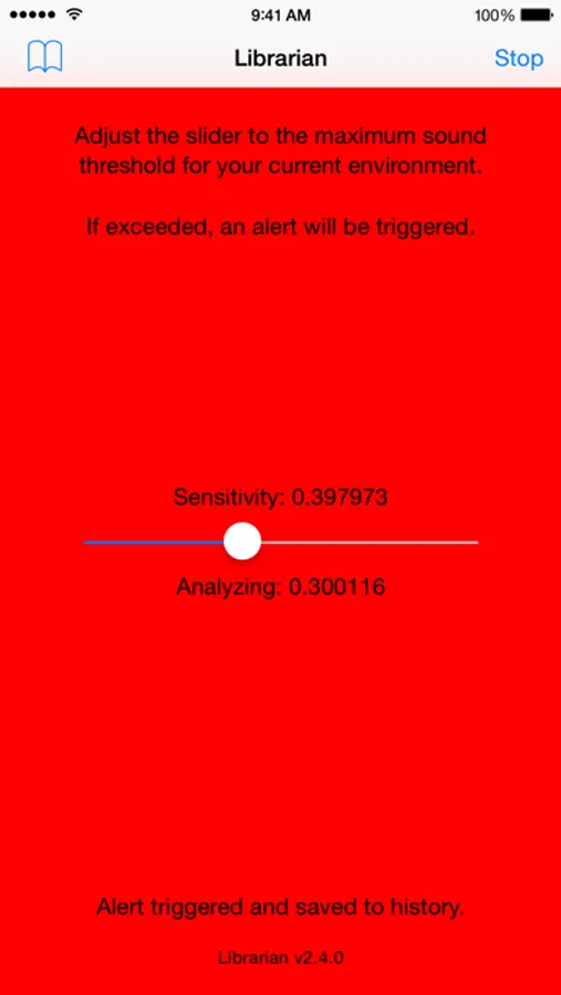 Simply set the audio level sensitivity and tap start to begin. Once the noise surrounding you exceeds the set sensitivity level, those around you will be politely notified with a "shhhh".