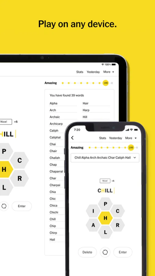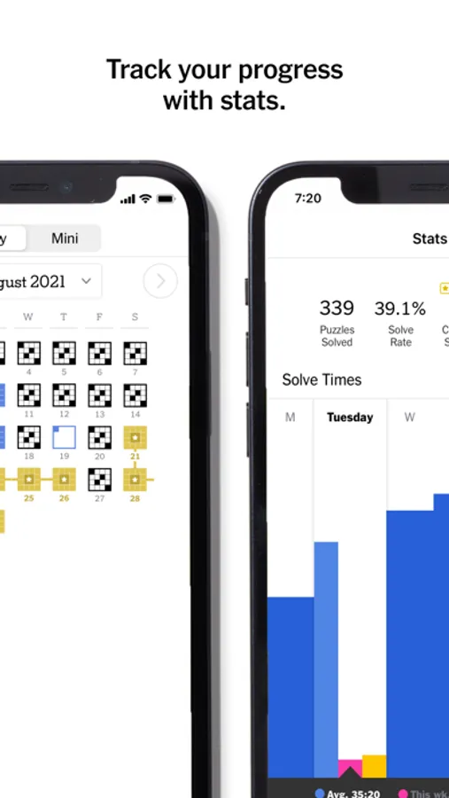 Track your progress for The Crossword, Wordle and Spelling Bee. For The Crossword, monitor your average solve times, see how many puzzles you can solve in a row, and more. Plus follow your streak on Wordle, and track how often you reach each level in Spelling Bee.