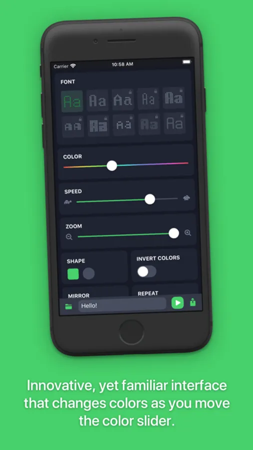 LEDit turns your iPhone/iPad into an awesome ticker display. It’s the perfect app to communicate with your friends in noisy bars, parties or concerts. Also in places where shouting would be inappropriate such as meetings, classes or libraries.