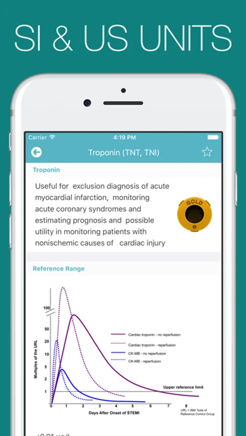Medical Lab Tests comes with a clean and neat design, and the interface is so user-friendly that you’ll get the whole idea after browsing through different categories and read about lab values for a few times. The entire reference values are available in US and SI (metrics) units and you can easily mark some value as favorite for quicker access in the future.