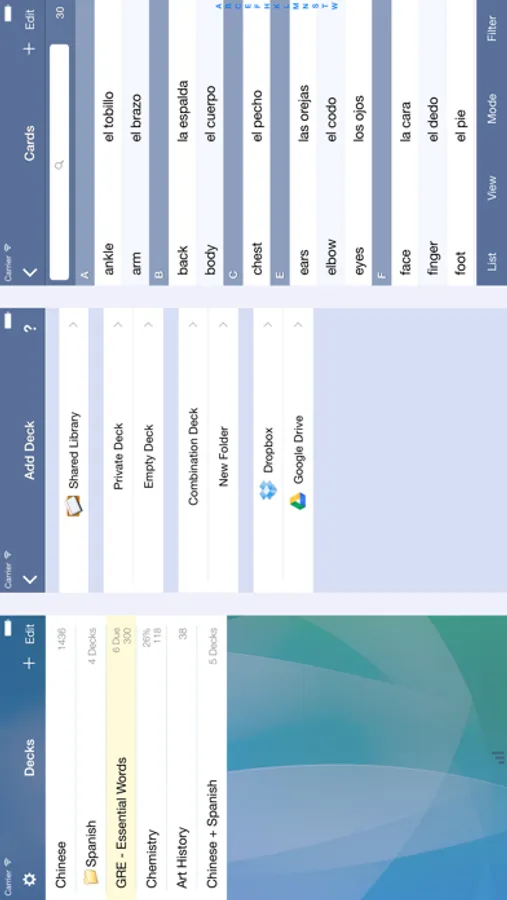 • Organize decks in folders and combine decks for studying