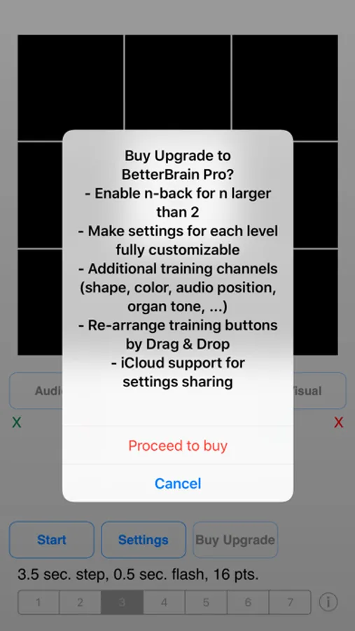 Fluid intelligence is your ability to reason and solve new problems independently of previously acquired knowledge. With Better Brain Lite you practice a challenging memory task where you have to remember simultaneously audio and visual events. A scientific study has shown a positive effect of this training on the fluid intelligence of a test group.