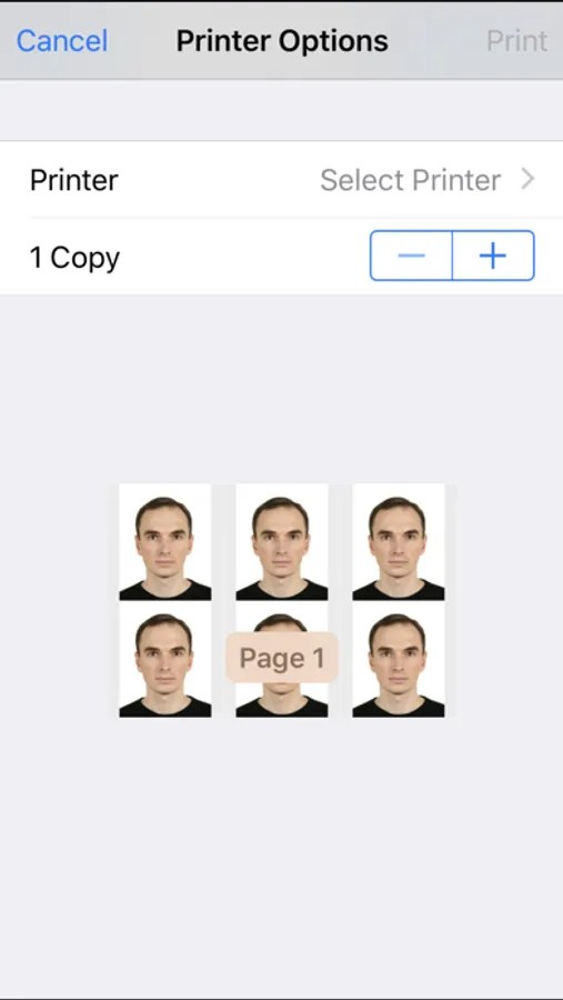 Print function will only work if you have Apple compatible printer and you will also need to change paper size to 2" in order to print a valid passport photo.