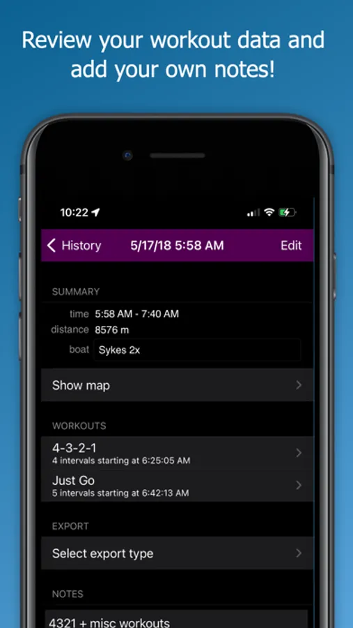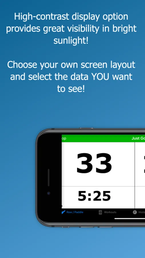 Use custom workouts to keep your practices on target. In coach mode, you can tap anywhere on the screen to check stroke rate. CrewNerd can also be used on the iPad for a larger display.