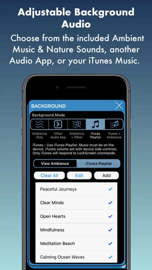 Brain Wave Altered State uses the most advanced multi-stage binaural sequences available, combined with the flexibility to choose from a range of relaxing ambient backgrounds, other audio apps, or your own iTunes Music, allowing your mind you to relax and synchronize with your desired state. It achieves this using our unique process called Progressive Brainwave Entrainment.