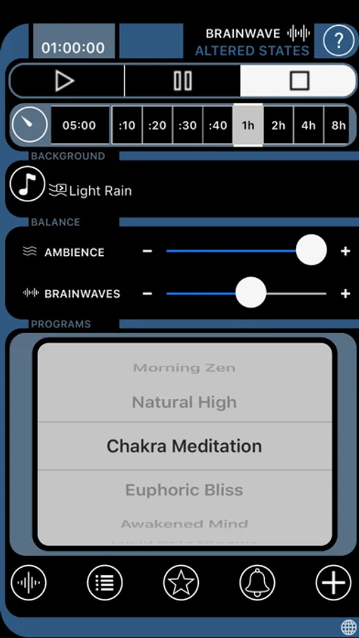 - Chakra Meditation: A series of balanced, meditative brainwave programs each taking you to a different, deeper meditative state, ending in the ultimate state of meditation and calm.
