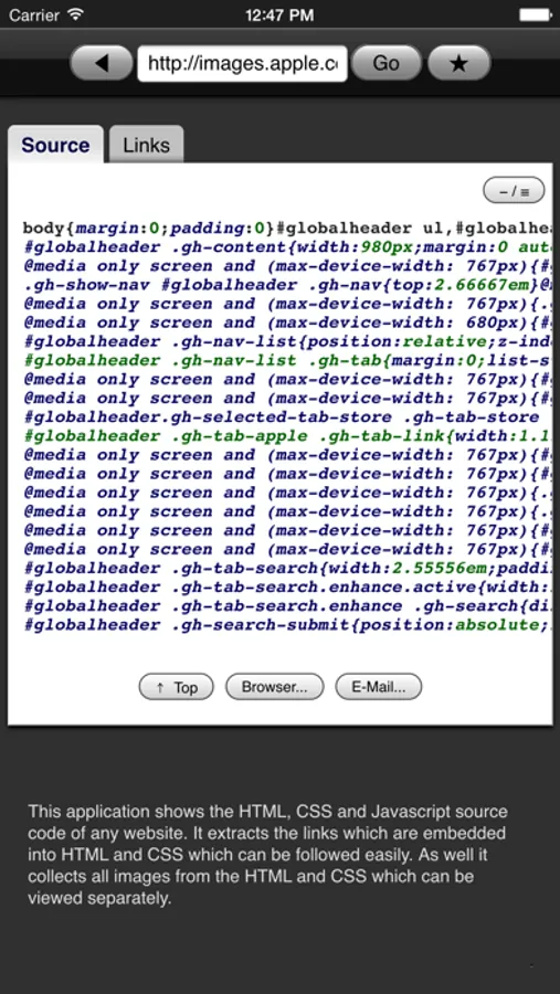 Whether you are a web designer or just curious - this application is for you. Source Viewer shows the HTML, CSS and Javascript source code of any website.
