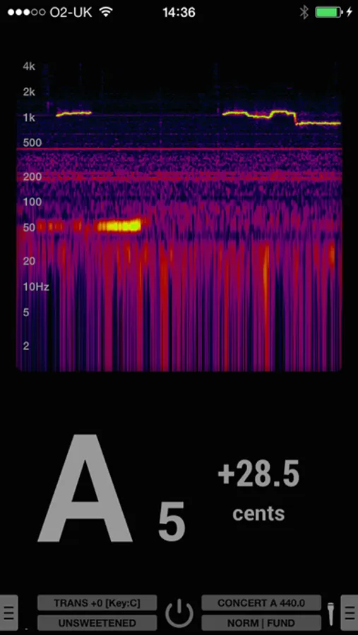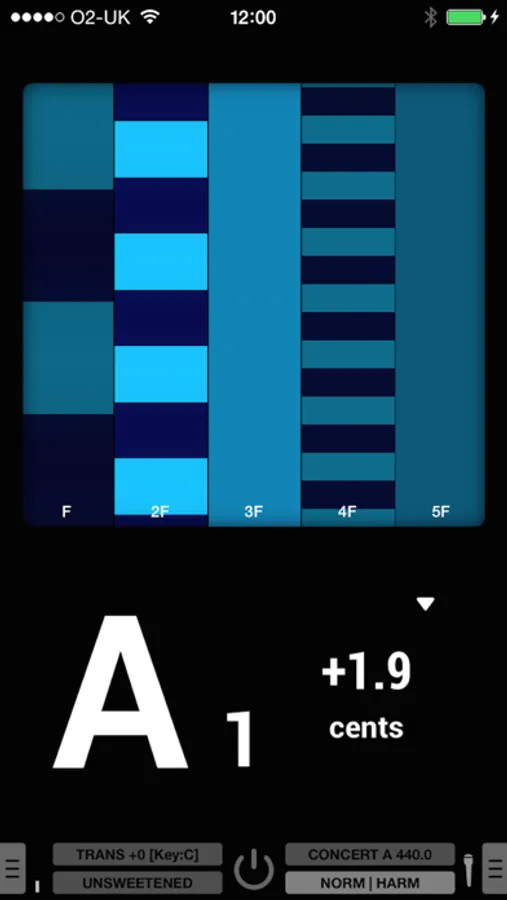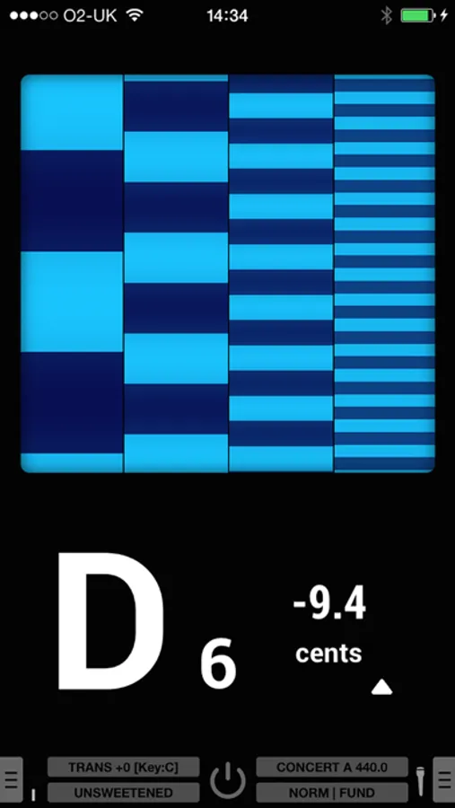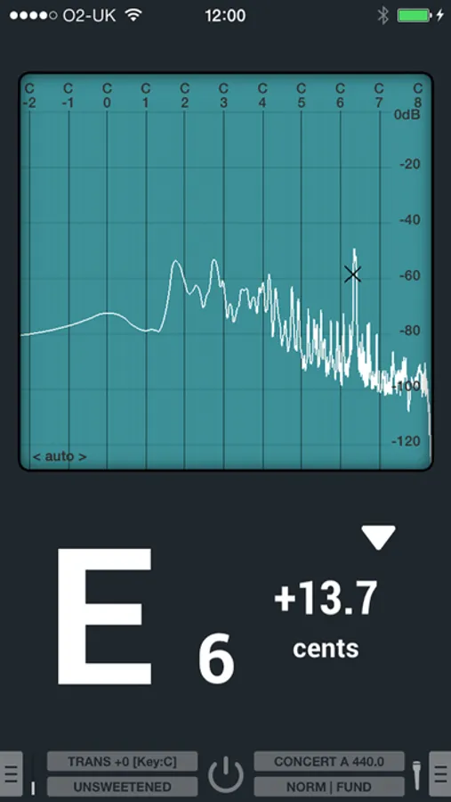 • Cents display allows you to see how far out of tune your note is in cent values.