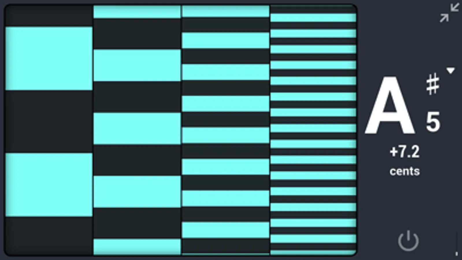 • Toggle the display to show: cents, Hz, MIDI note value for the note being tuned.
