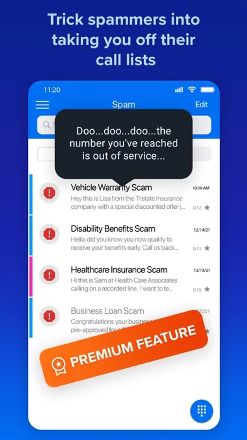 Scammers do nasty things to reach you from spoofed and unknown numbers. So we built “Call Screening” into our award-winning app. When you upgrade to our Plus service, call screening will force unknown callers to prove they are legitimate, stopping 100% of robocalls. Plus, we will get your info removed from data brokers’ websites so bad guys can’t find your number and info online.