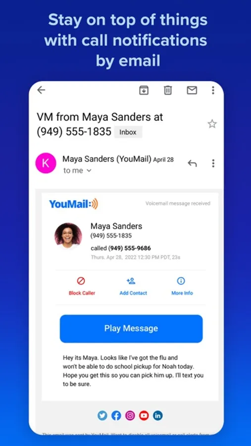 From free protection that reduces robocalls and spam texts and protects your voicemail to advanced protection to screen unwanted callers or even add a private second number to your iPhone, YouMail is here to make you safe. If you are an entrepreneur, YouMail offers professional features that make running your business from your mobile phone safe, productive, and affordable (learn more at YouMail.com).