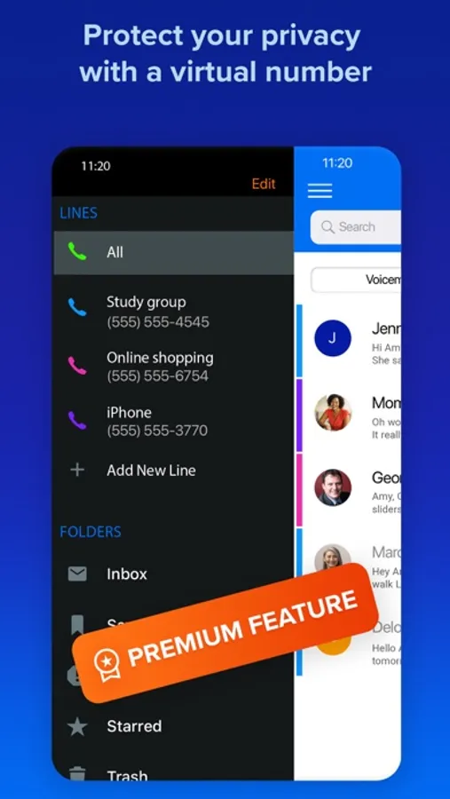 An extra phone line lets you make and receive calls and texts using a new number you choose. That means more freedom and privacy:
