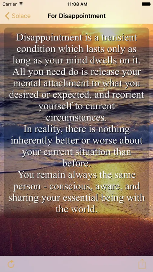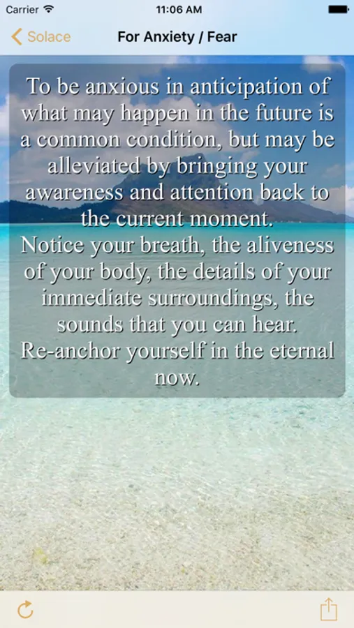 The app contains a collection of original passages of text composed especially for this application, inspired by Eckhart Tolle, Torkom Saraydarian, J.Krishnamurti and other teachers of the Ageless Wisdom. There is no religious content, but it is intended to be spiritually refreshing and stimulating. The text is non-trivial - it encourages you to explore deeply, inspires you to overcome your limitations, and provides comfort and self-empowerment in times of need.