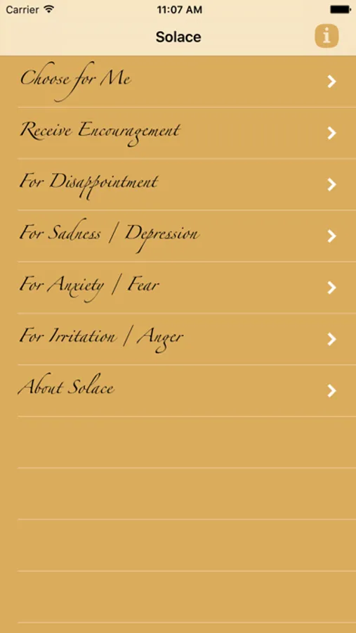 You may either choose text by category, or allow a random selection especially for you. Optionally you can have the app open immediately to a random selection, as a "thought of day", and the text may be either autoscrolled or allow you to scroll manually.