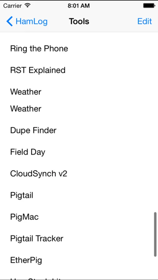 * iTunes File Sharing - For data backup and ADIF import - Drop somelogfile.adi into the file sharing pane and press Tools → Import ADIF. somelogfile.adi should be lowercase until I get an update to recognize uppercase filenames.