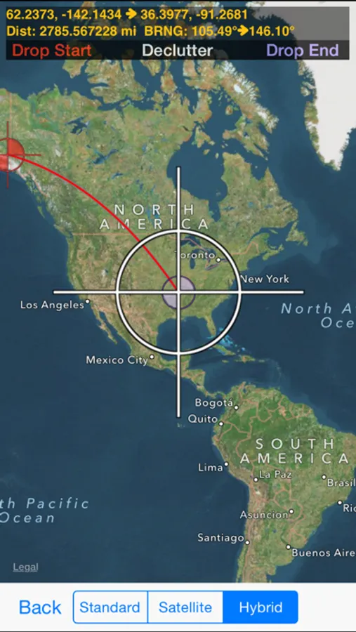-Can use and drag the points around on the built-in map and get distance/bearing updates continuously.