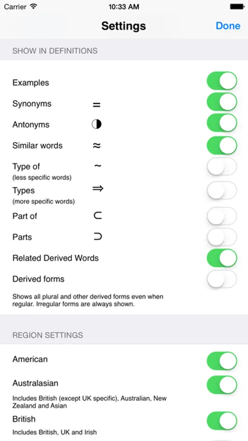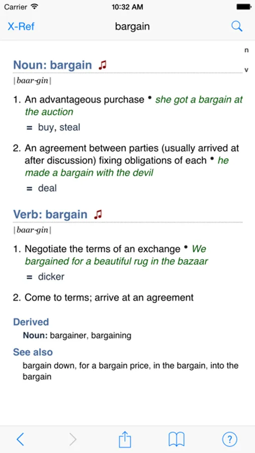 A quick, easy to use, and comprehensive American English dictionary/thesaurus with 70 000 professionally recorded audio pronunciations. Fast searching, detailed definitions, synonyms, derived words, examples, and a great user interface let you easily navigate between words as you discover and explore their meanings.