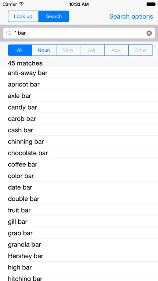- Filter search results by noun, verb, adjective, adverbs
