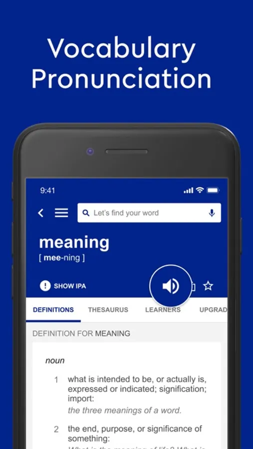 With more than 2 million trusted definitions and synonyms plus word puzzles, language quizzes, and spelling quizzes, this English dictionary and thesaurus app for iPhone is optimized with your mobile device in mind to help you learn English or improve your English vocabulary.