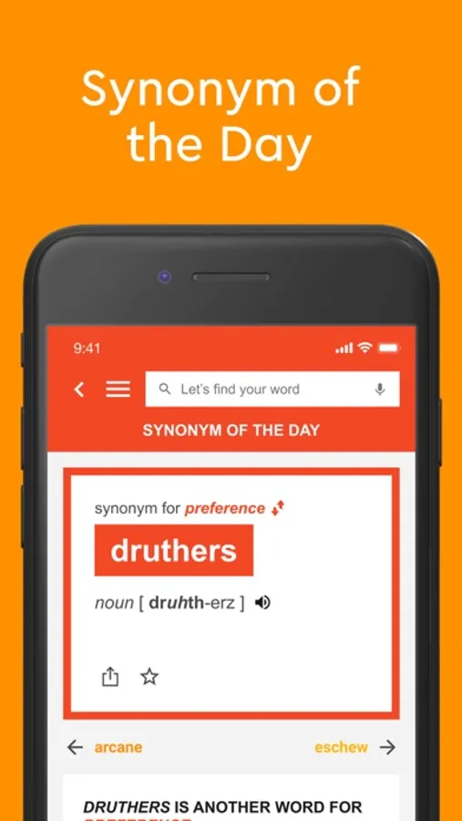 Flip to dark mode to give your eyes a break, or stick to the traditional set-up. It even works offline! Install the offline dictionary for access to definitions and synonyms whenever and wherever you need them — no bulky books necessary.