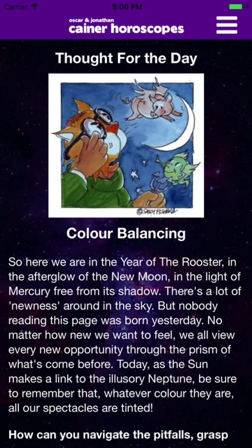 Daily, Weekly and Monthly Horoscopes and Astrology from Oscar & Jonathan Cainer. Plus 'Thought for the day' and 'Find out about your friend!'. Get advice and information from Oscar online or offline.