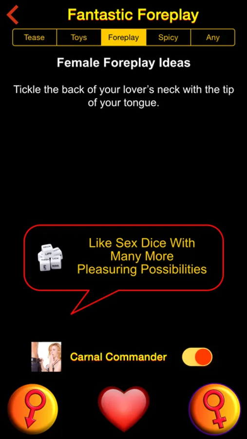 Note: Content presented in iLoveRandomSex is of a sexual nature with intentionally suggestive themes appropriate for adult couples. The application is intended for loving couples who want to enhance their relationship. It contains textual information only with no nudity. You must certify you are of legal age to view sexual material to enter the application. The full Disclaimer and Terms of Use can be found on our support website.