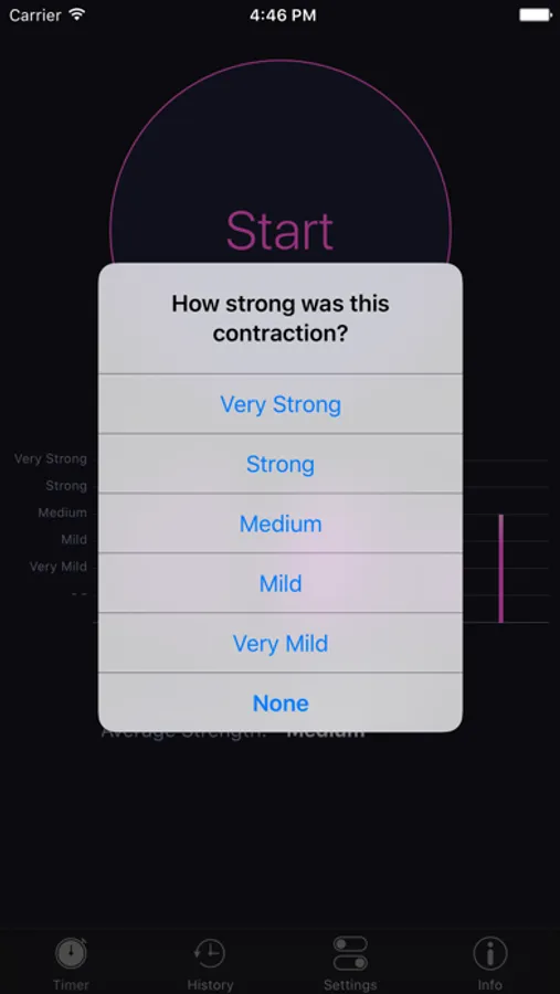 • Alert pops up when contractions are close enough and long enough.