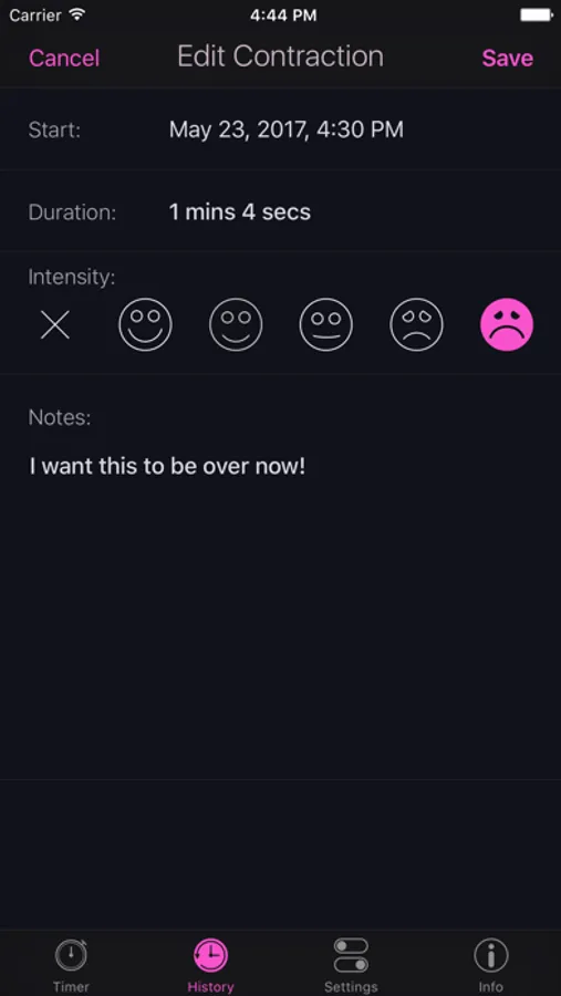 • Add notes to any single contraction.