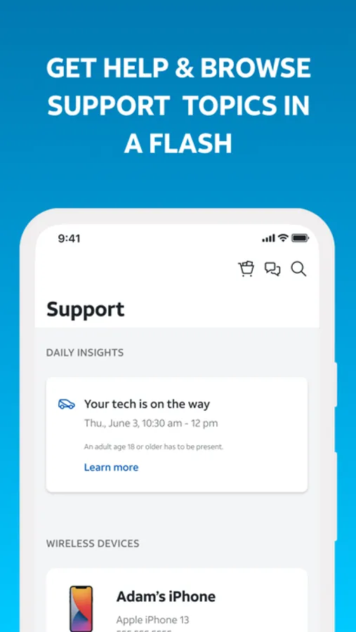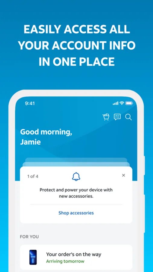 • Upgrade your phone or plan: Pick it up in the store, or have it delivered to you. You can also make changes to your plan right from the app.