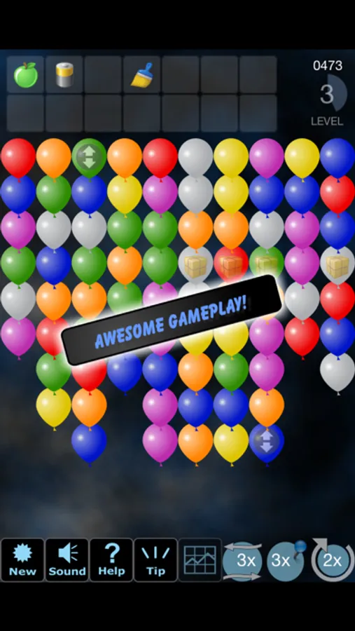 Tap once to select the group of same colored balloons you want to pop (balloons will start pulsating) – tap again to pop the balloons. Balloons below the removed ones will move up to fill the empty space. Package will be revealed if no balloons are covering it.